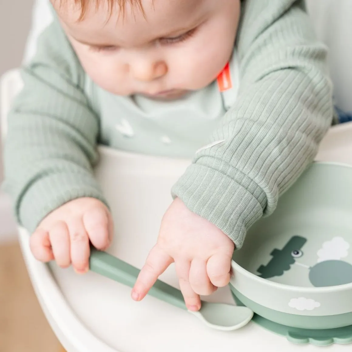 Crée un petit moment de joie à table avec un bundle que tu composes toi-même. Choisis un look vert tout doux et mélange les pièces qui conviennent le mieux à ta famille – d’un bavoir à manches longues ou d’un bavoir court à différentes options de couverts avec Croco & friends.