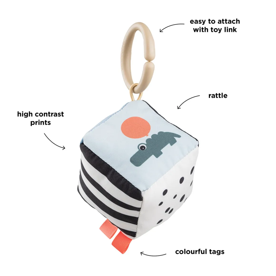 – Le hochet émis à l’intérieur du cube stimule la curiosité de bébé.