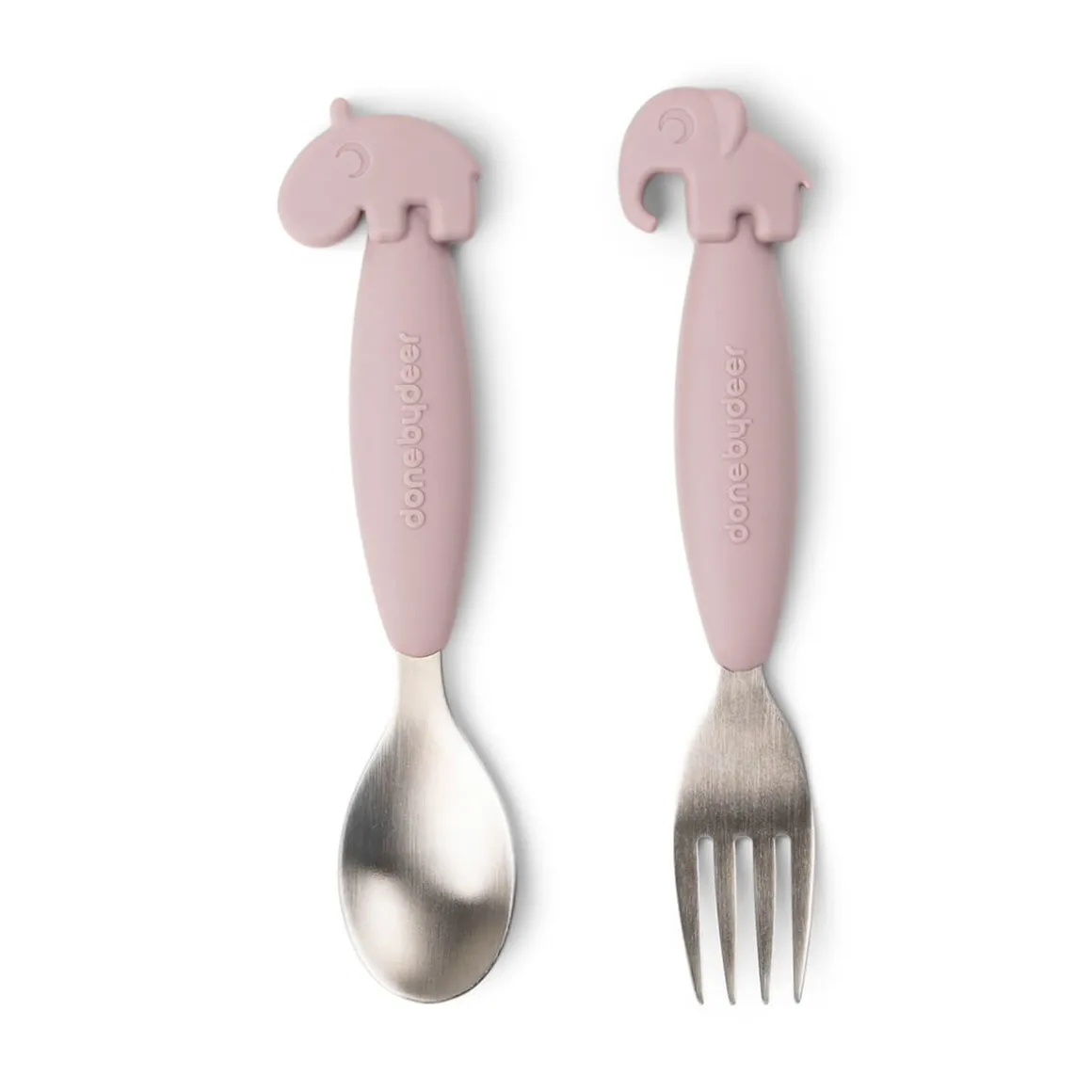 La fourchette Elphee et la cuillère Ozzo sont assorties à l’ensemble de la collection de vaisselle Done by Deer.