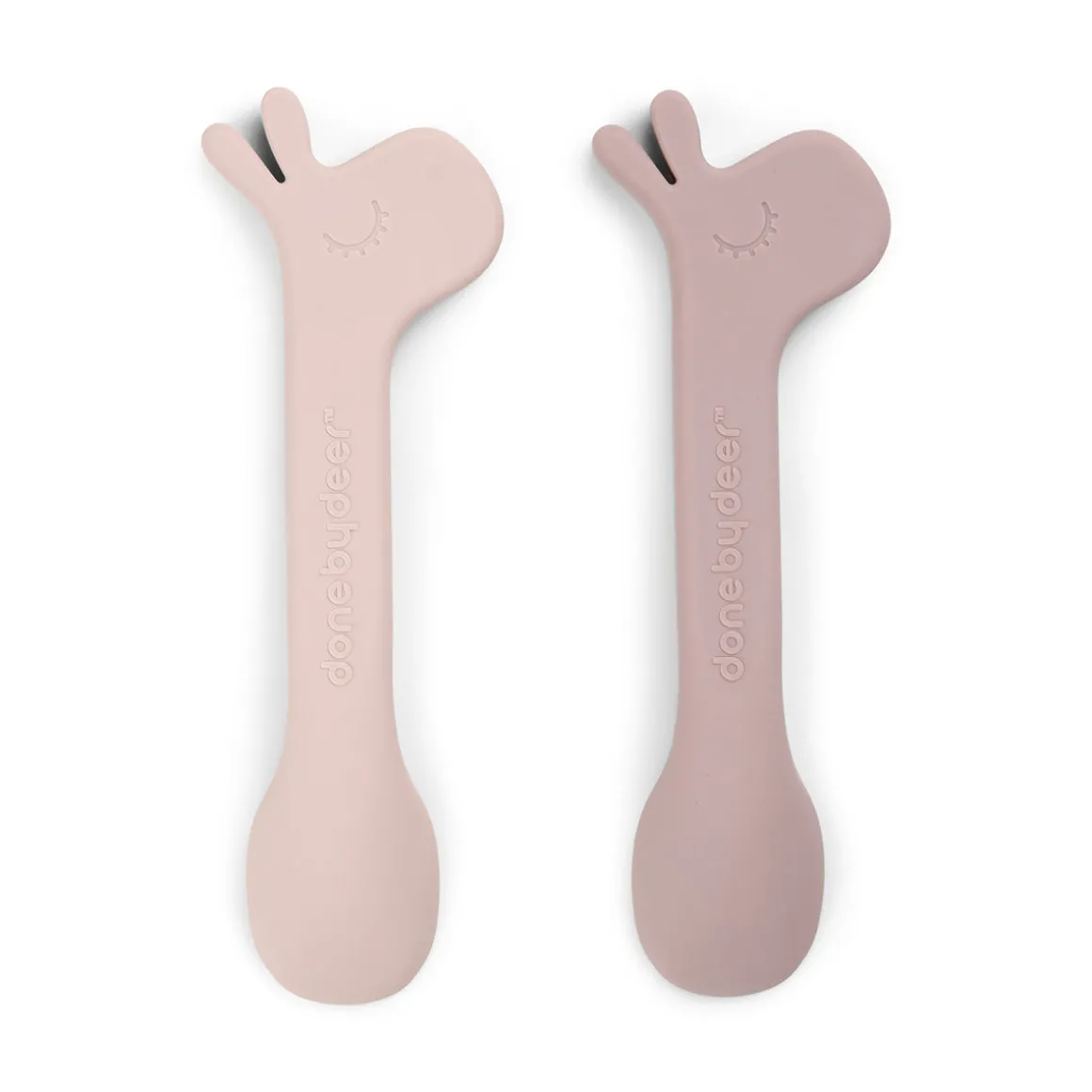 Un lot de 2 cuillères pratiques en deux tons de Rose. Parfaites pour manger tous les plats préférés et essayer de nouveaux aliments.