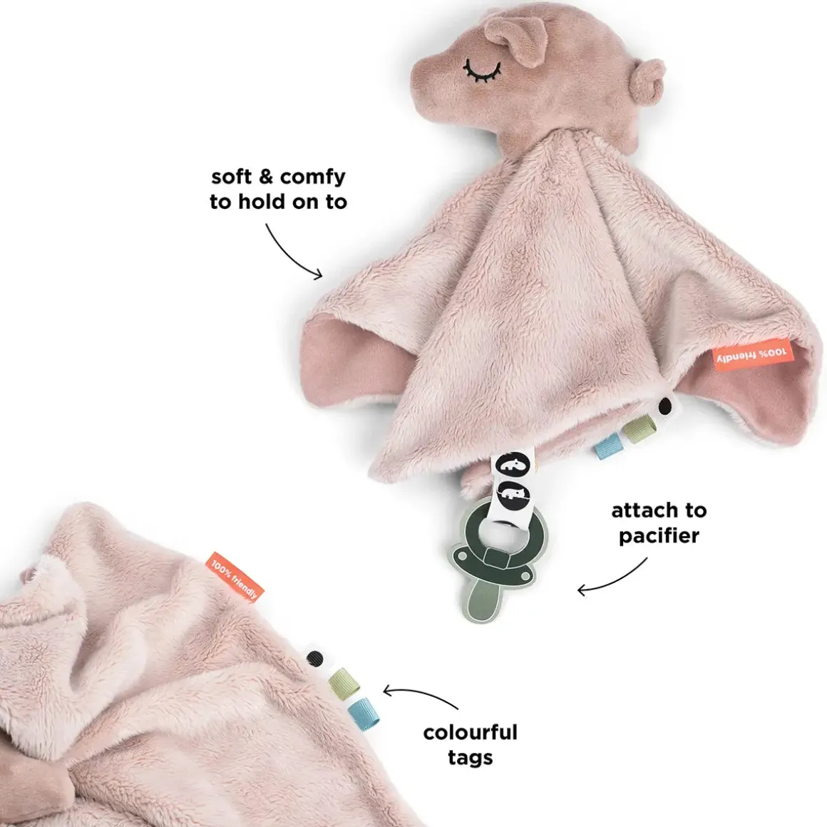 The Velcro clip keeps a pacifier close by, making it perfect for naps, bedtime, or new adventures. In a cute powder colour with Pigee attached, this Deer friend is always ready to comfort your little one wherever they go.