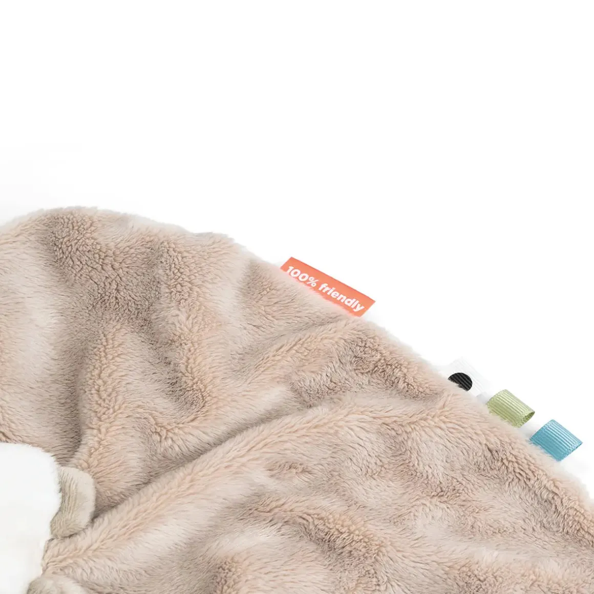 The Velcro clip keeps a pacifier close by, making it ideal for travel or when heading off to dreamland. In a gentle soft sand colour, this blanket comes with Sheepy, providing extra comfort and companionship. Whether at home or on the go, this sweet companion offers security and warmth to your little one.