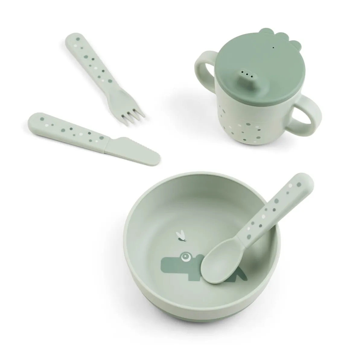 Laissez votre petit mangeur savourer un repas tiré de l’ensemble de premiers repas Foodie. L’ensemble vert est imprimé d’un motif sympathique représentant Croco, le crocodile, qui regarde un couple de lucioles. La curiosité de Croco inspirera votre enfant à explorer la nourriture dans l’assiette.