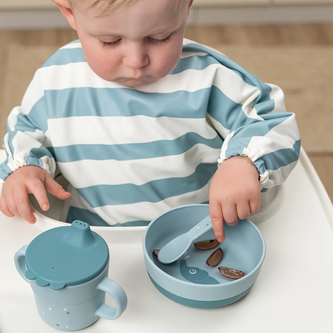 Le set Rose est imprimé d’un motif ludique Happy Clouds. Birdee explore le monde parmi les nuages et invite votre enfant à découvrir de nouvelles saveurs et consistances.