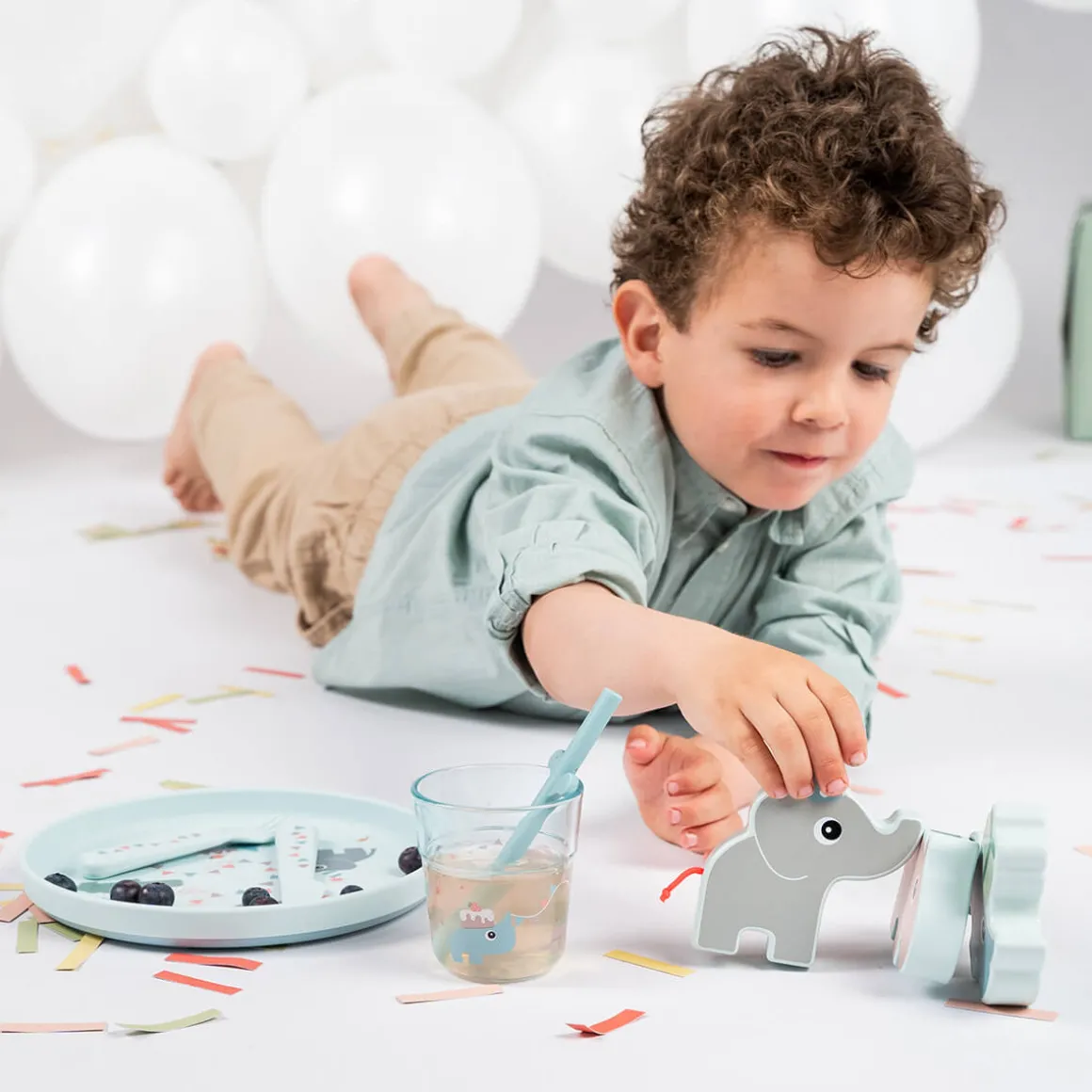 Ce coffret repas Foodie bleu est parfait pour faire de chaque repas une Celebration. L’ensemble comprend une assiette, un verre, un couteau, une fourchette et un petit livre, tous ornés d’un joli motif représentant les assiettes des Deer friends.