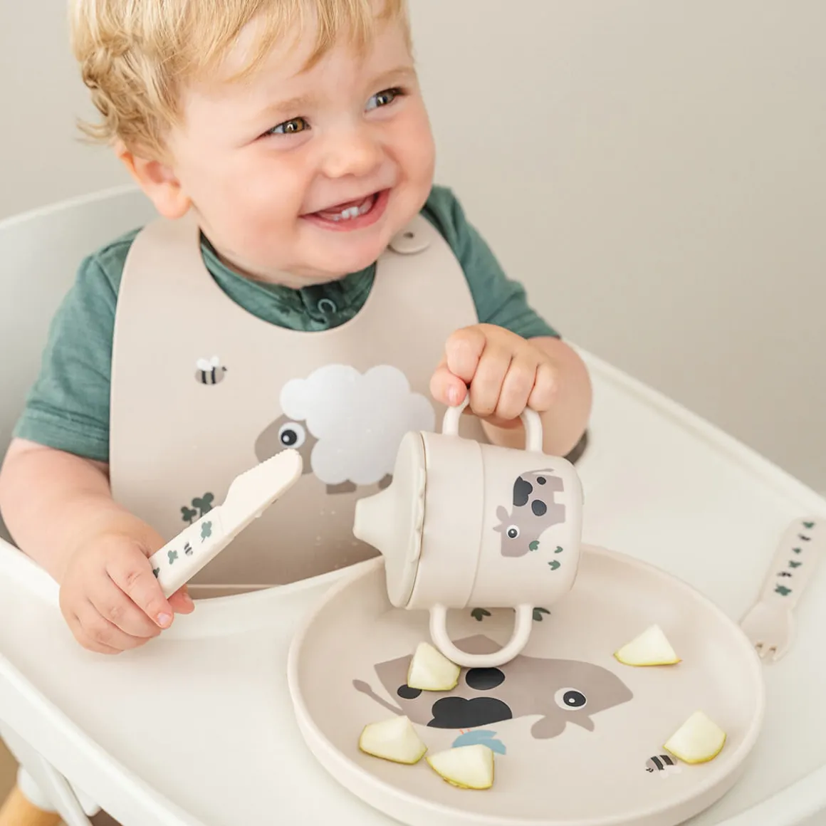 Well-dimensioned for easy grip, the set encourages self-feeding and confidence at the table. Made from durable recyclable materials, it’s a great choice for everyday use. In a soft sand colour with a charming strawberry motif, it brings a touch of sweetness to every bite.