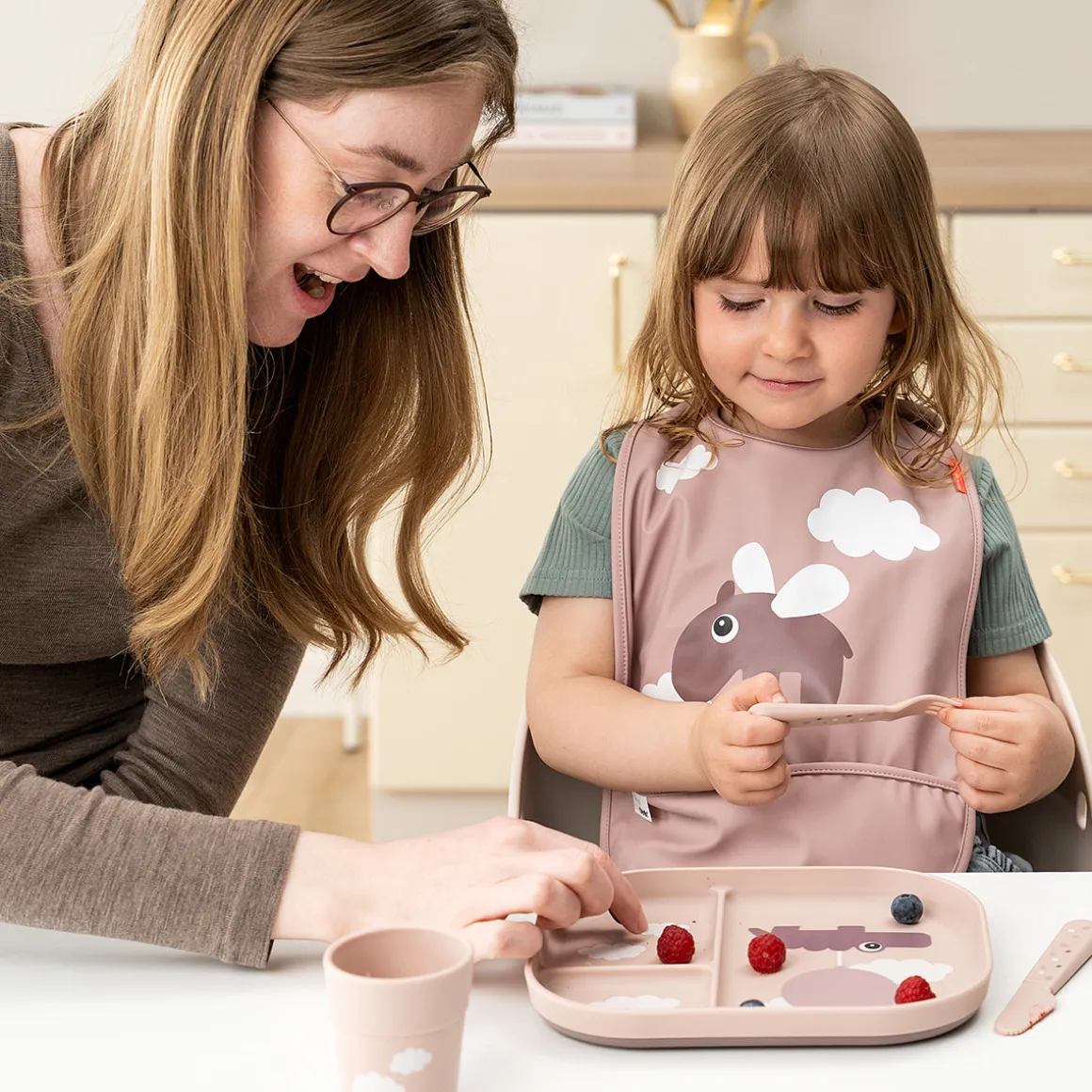 La mini tasse est conçue pour la vie quotidienne avec les enfants et passe au lave-vaisselle et au micro-ondes. Une fois que la tasse a rempli sa fonction au cours d’innombrables dîners en famille, elle peut être triée comme du plastique et recyclée en de nouveaux produits de la vie quotidienne.