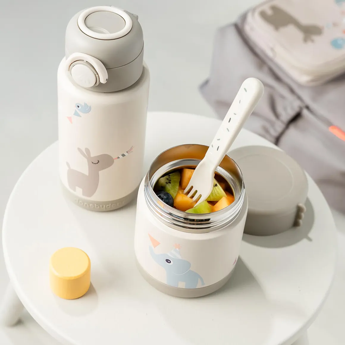 Dans un ton sable doux, cette gourde est animée par nos joyeux amis Deer, Birdee, Elphee et Lalee, prêts à transformer l’hydratation quotidienne en un moment ludique.