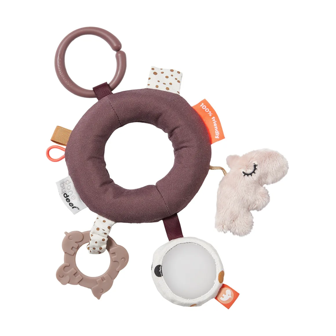 – Un anneau de dentition doux pour les gencives qui démangent, un miroir avec hochet, un Deer friend à la texture douce, des sons de crinckle et des hochets amusants.