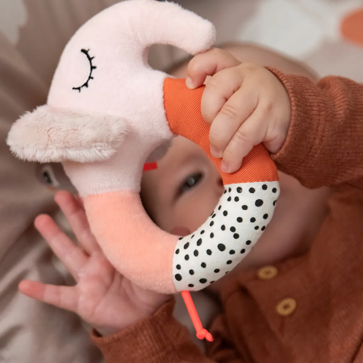 Les enfants s’amuseront beaucoup avec Elphee. Le hochet est composé d’éléments de couleur Rose, Corail et Papaye et d’un élément avec des hochets amusants.