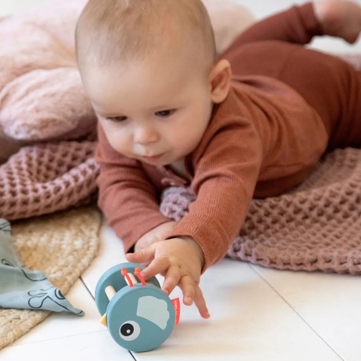 – Comporte de nombreux petits détails sensoriels qui stimulent votre bébé.