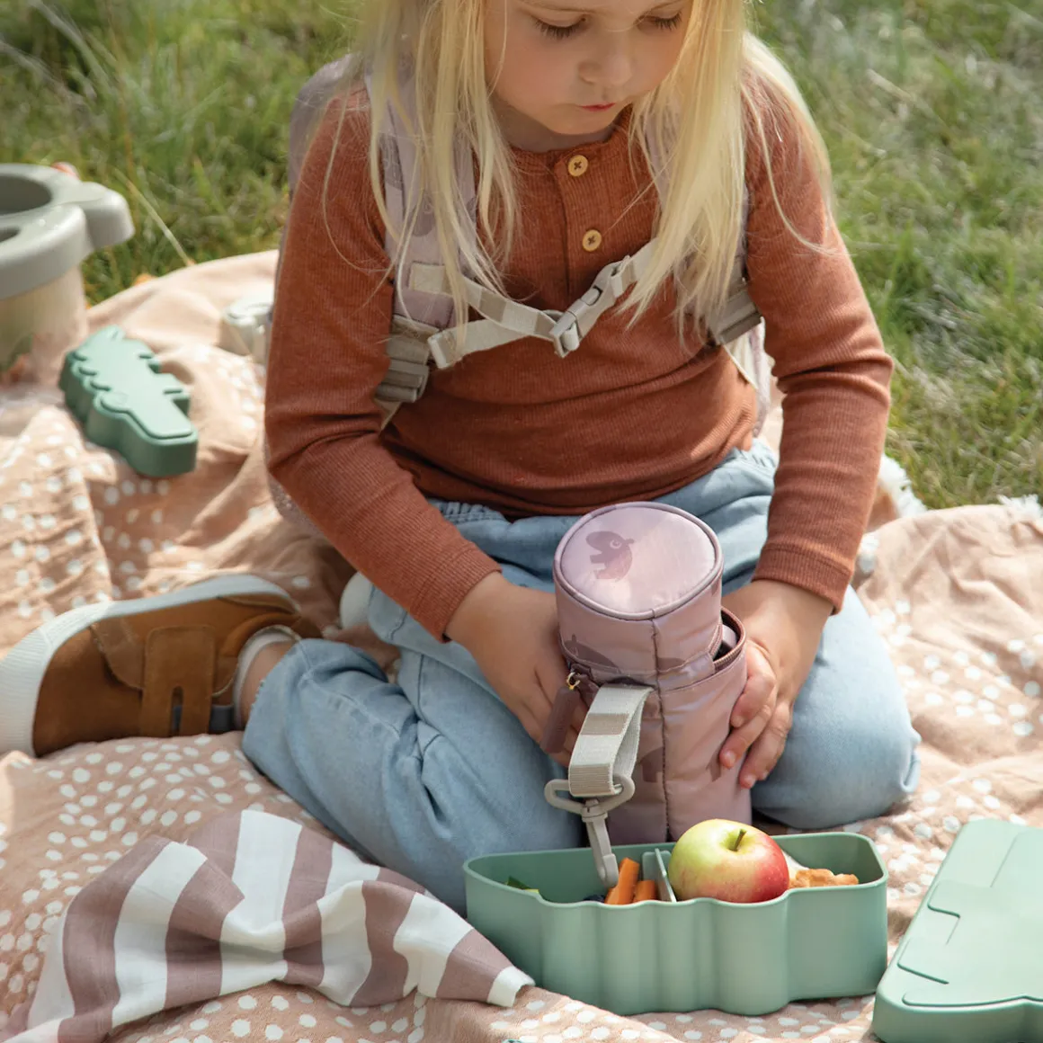 Le porte-bouteille isotherme Ozzo kids garde la boisson de votre enfant au frais ou au chaud pendant vos déplacements. Le tissu isolant à l’intérieur permet aux liquides de conserver la température souhaitée pendant des heures. Les gourdes Done by Deer s’insèrent parfaitement dans le porte-bouteille.