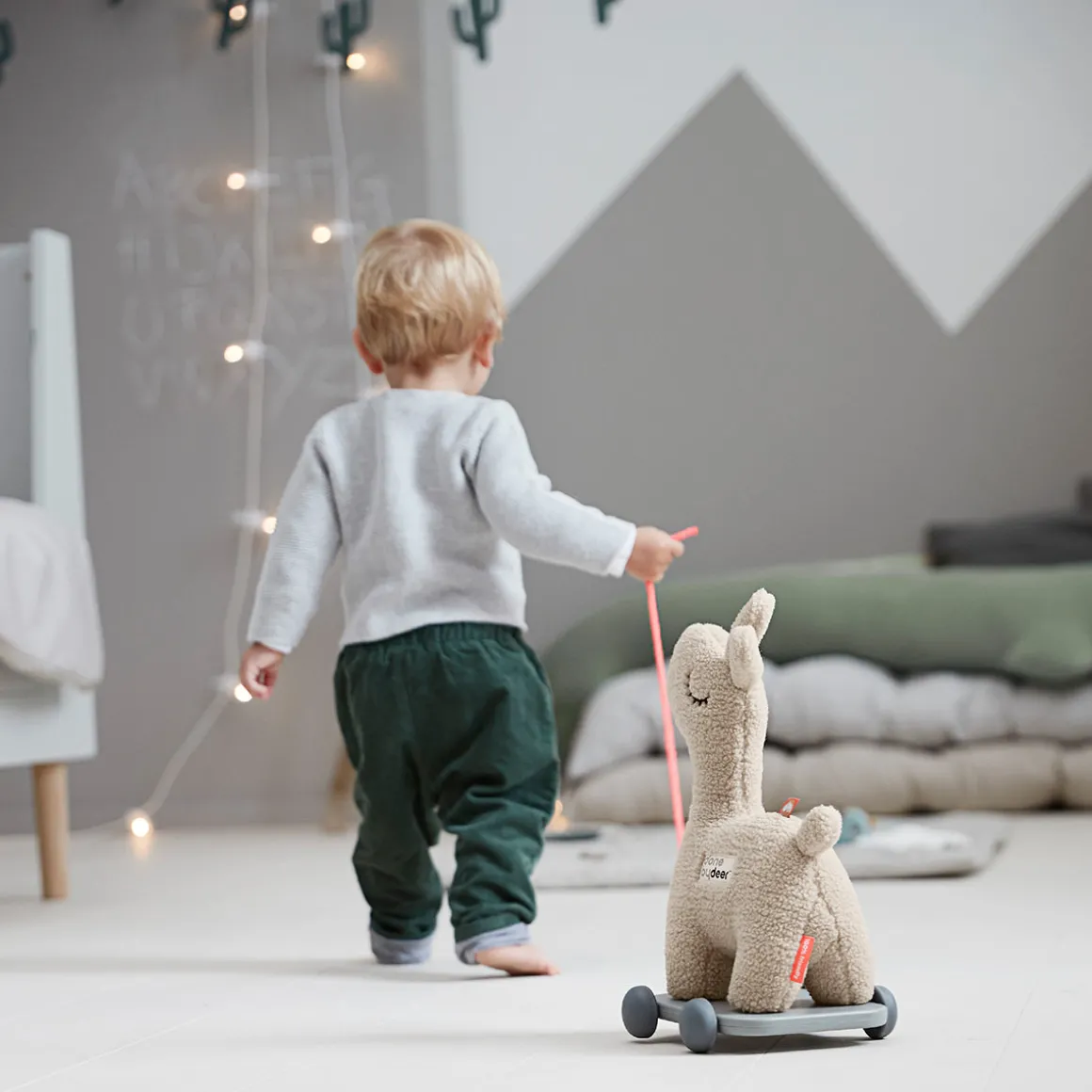 L’amusant jouet à tirer 2-en-1 Lalee, de couleur sable, encouragera les enfants à faire leurs premiers pas. Laissez l’adorable lama sur roues suivre votre bébé dans toute la maison – les roues en silicone souple sont sans danger pour les sols.