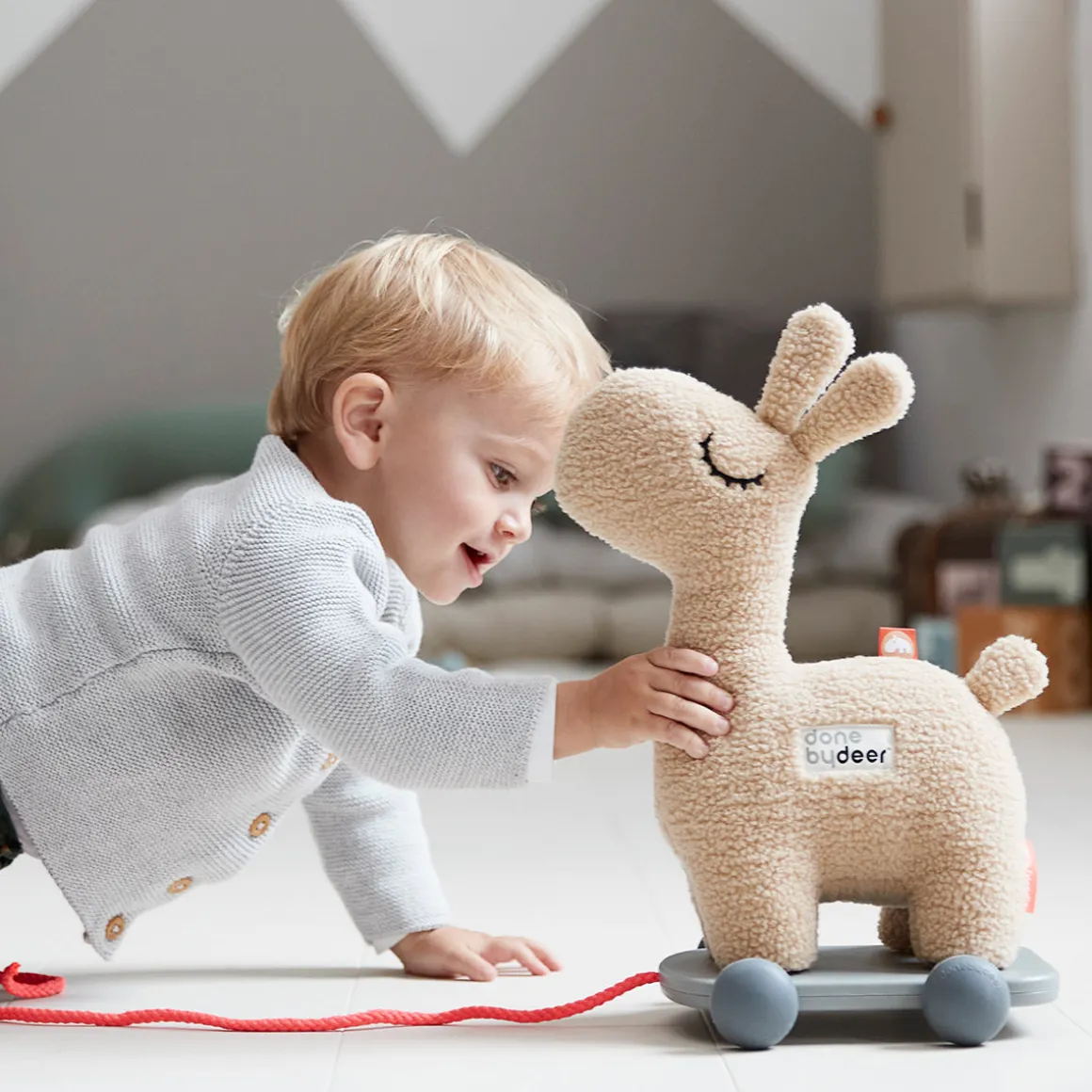 – Le jouet à tirer Lalee est fabriqué en tissu doux de couleur sable.