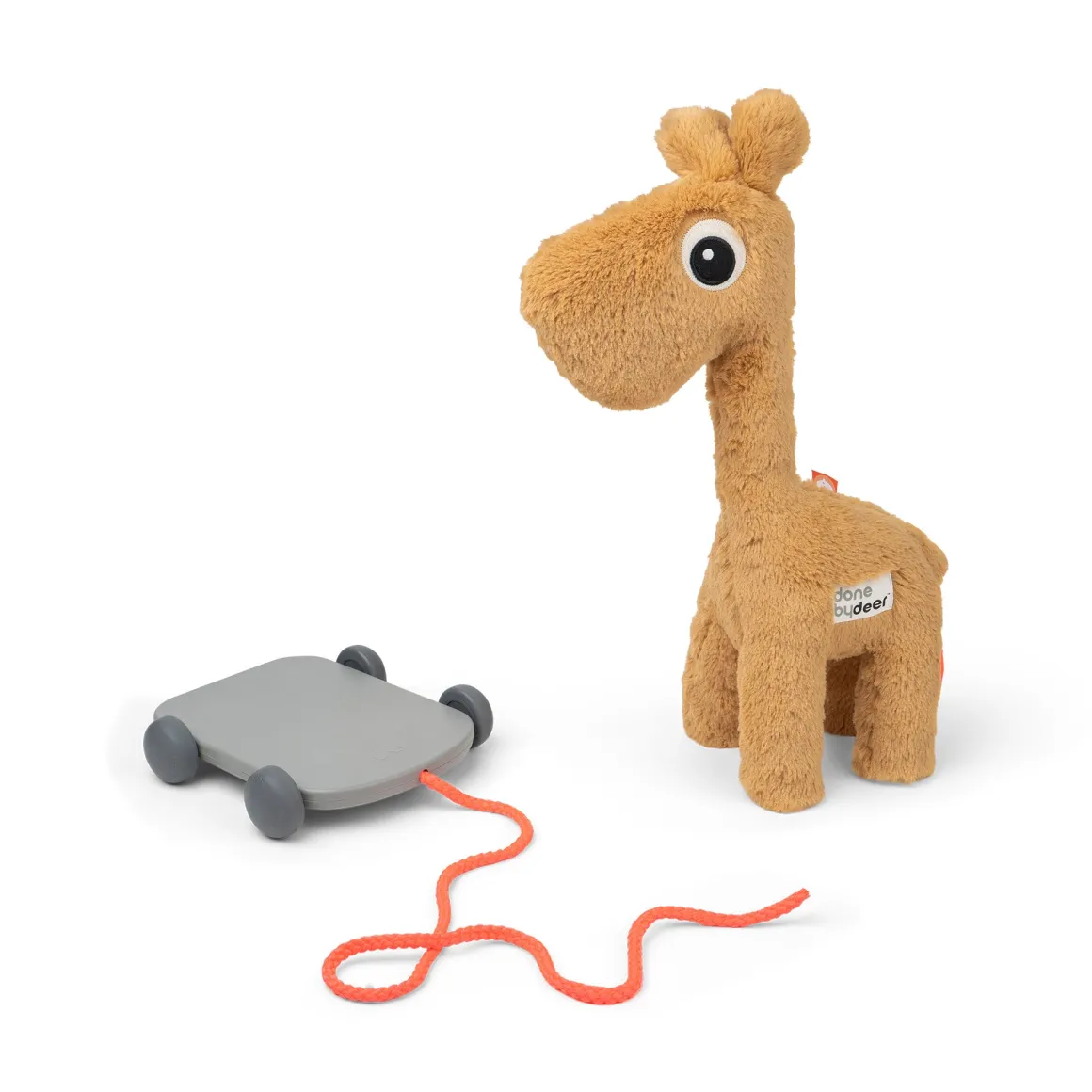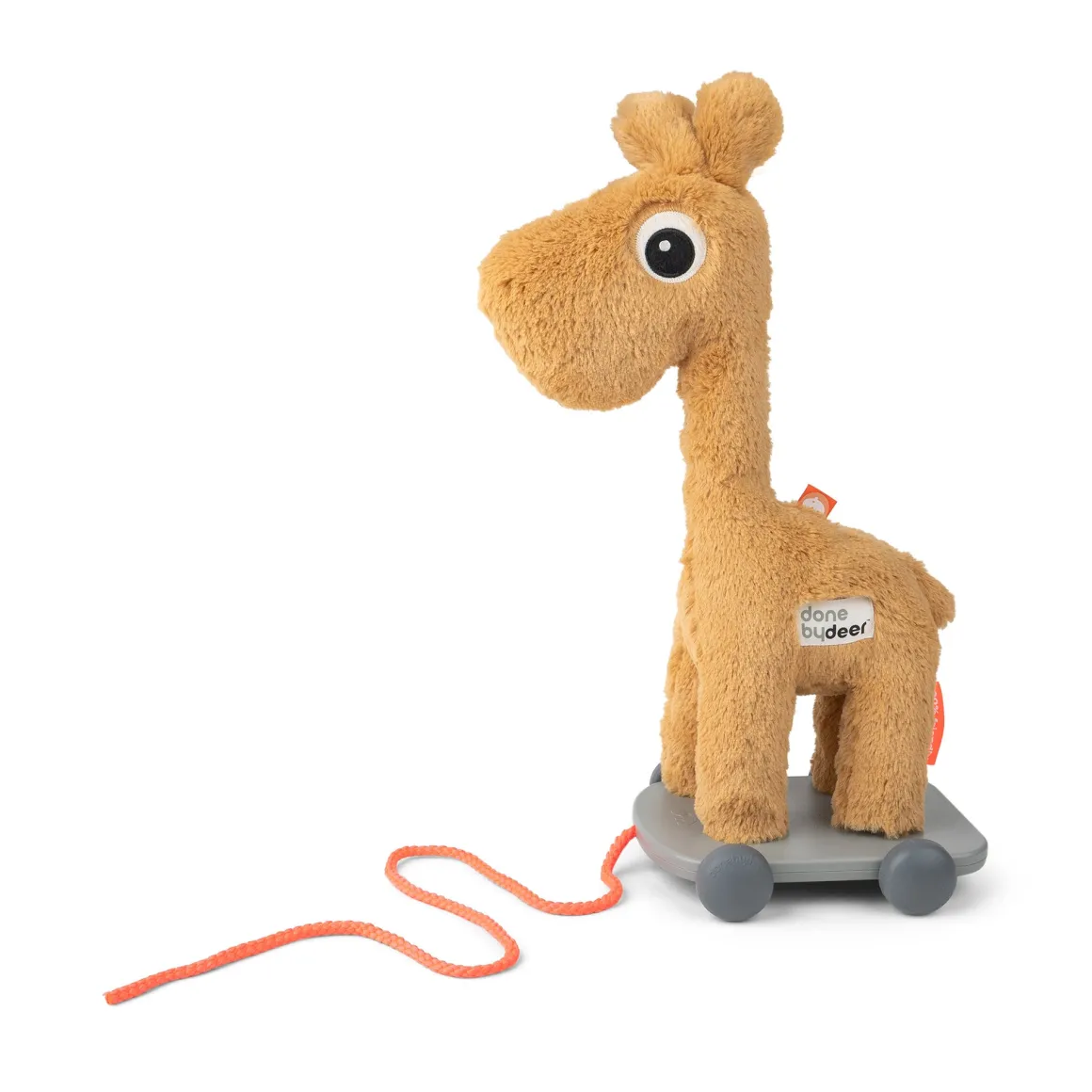 – Le jouet à tirer Raffi est fabriqué en tissu doux de couleur moutarde.