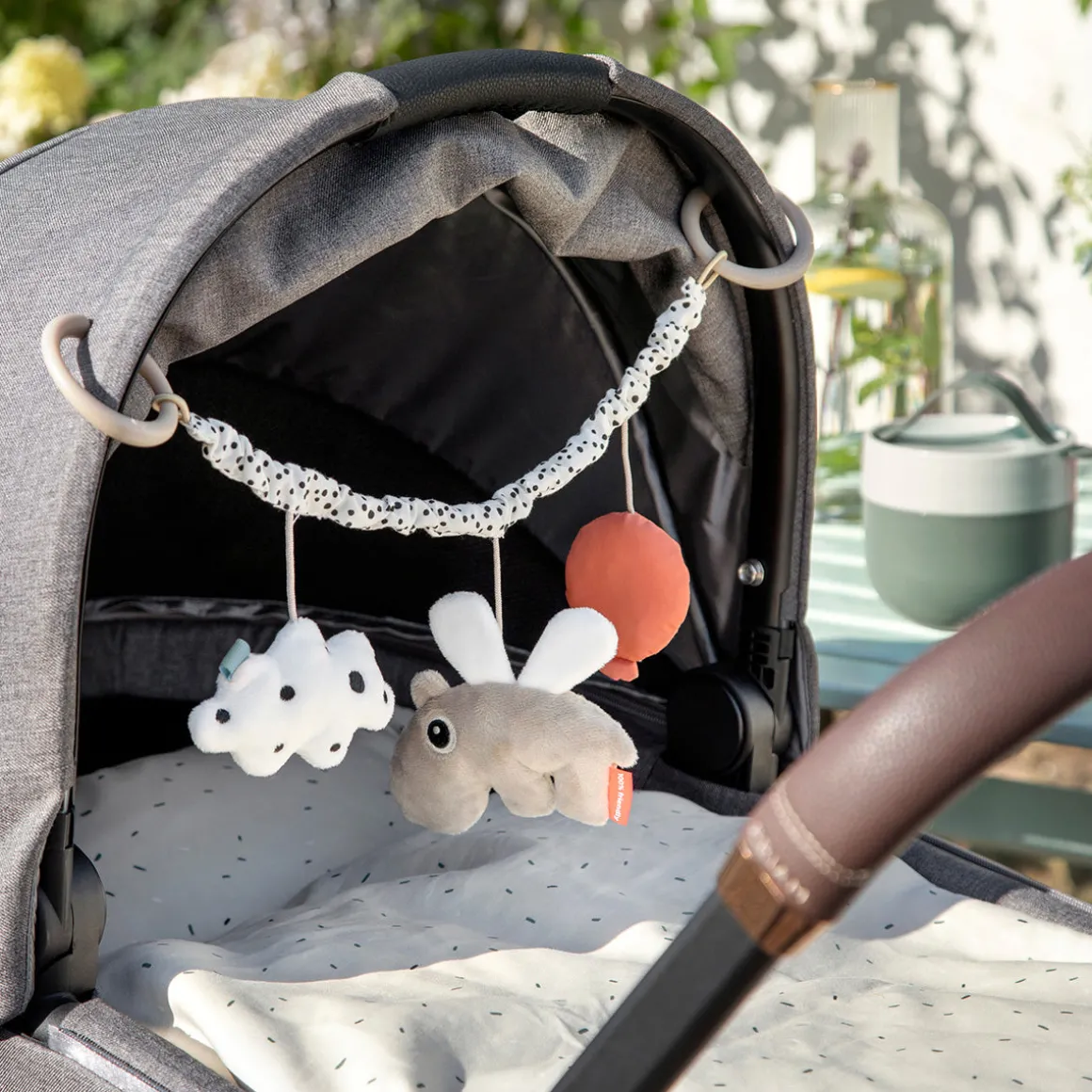 Avec ton jouet de landau Happy Clouds, tu es toujours prêt pour une aventure amusante.