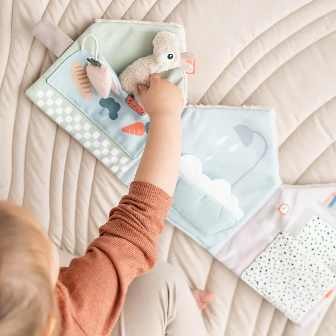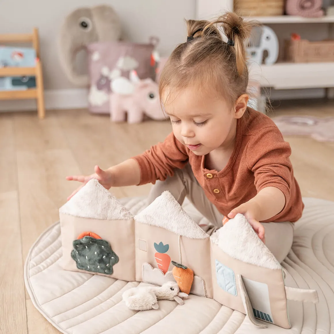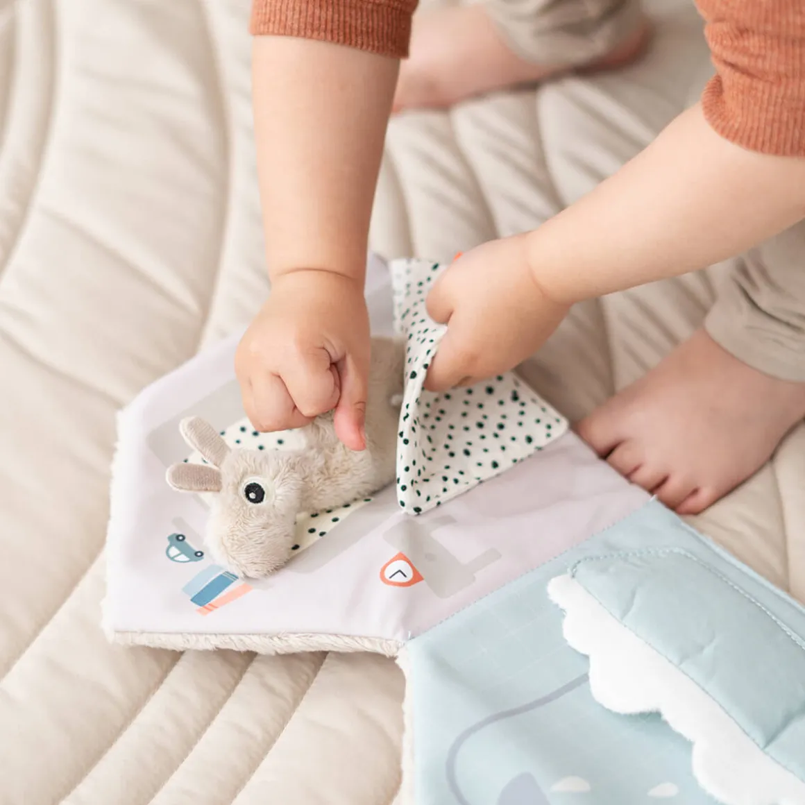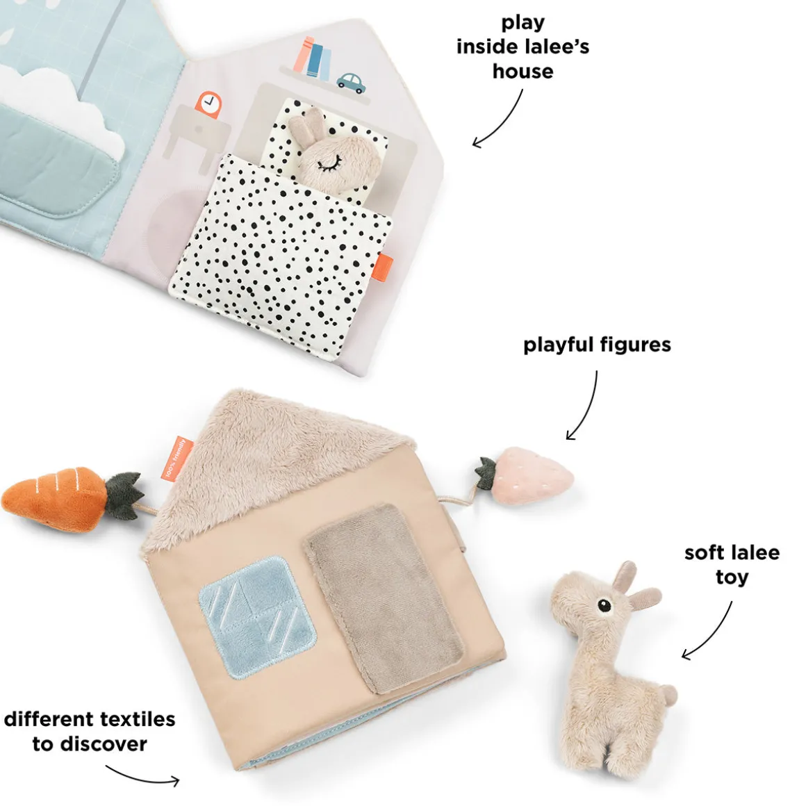 L’adorable livre souple Lalee invite votre enfant à explorer sa créativité, en favorisant la création d’histoires et le jeu imaginatif. Le minuscule jouet Lalee tout doux permet de raconter des histoires interactives, en jouant des routines quotidiennes familières d’une page à l’autre. Tourner les pages développe la motricité fine, tandis que raconter des histoires favorise le développement du langage.