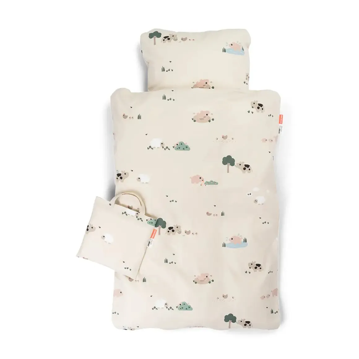 The YKK safety zipper in both the pillowcase and duvet cover keeps everything securely in place. The set comes in a matching tote bag, perfect for storing toys, clothes, or other little treasures. In a soft sand colour with adorable motifs of Dotti, Pigee, and Sheepy, this bedlinen brings warmth and comfort to bedtime.