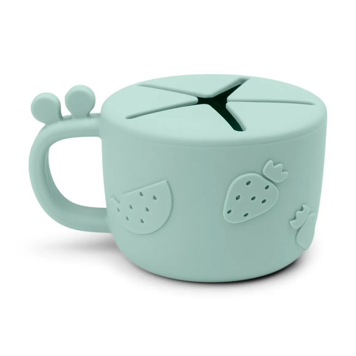 – L’ouverture souple est parfaitement conçue pour que les petites mains puissent facilement se glisser à l’intérieur et saisir un en-cas