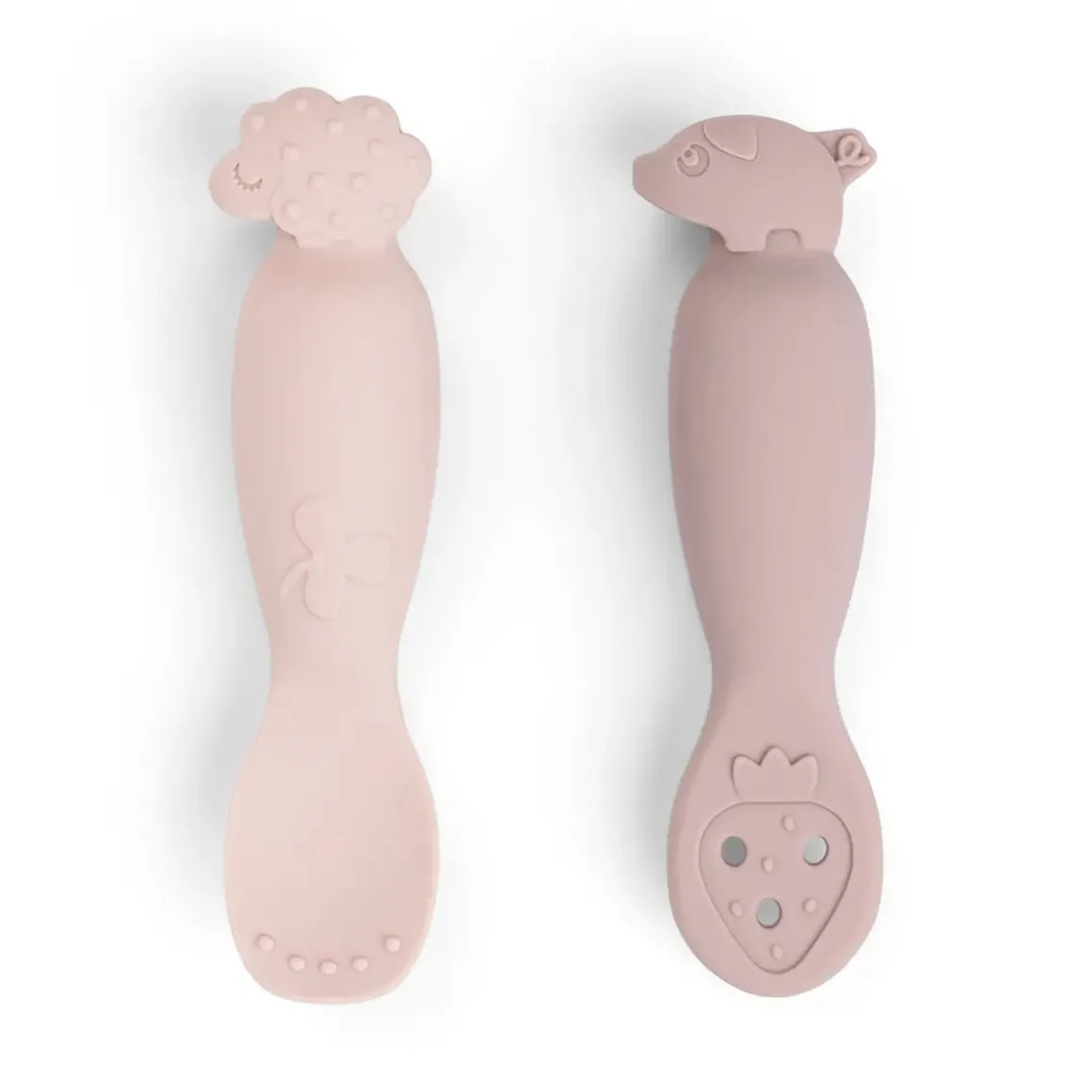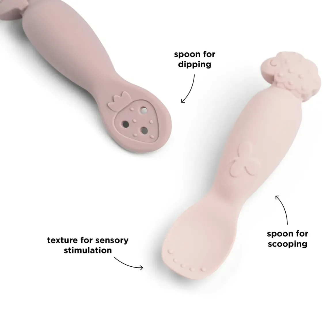 Soft spoons designed for your little one to explore food at their own pace. One spoon for dipping and one for scooping, both made with shapes and textures that are easy for tiny hands to use.