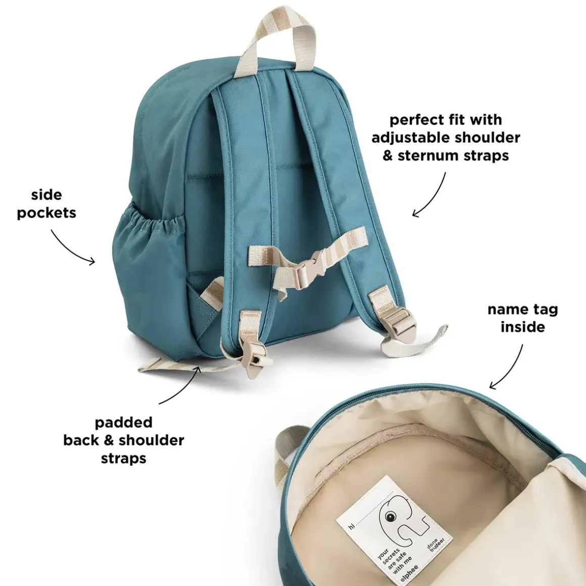Avec son dos doux et rembourré et ses bretelles réglables pour les petites épaules, il est confortable à porter toute la journée. Il y a une grande poche principale pour tous les trésors, une poche frontale pour les goûters rapides, et deux poches latérales parfaites pour les petites gourdes ou les trouvailles secrètes. Un badge à l’effigie de l’un de nos Deer friends ajoute une touche ludique, tandis que la surface durable et résistante à l’eau résiste aux petites taches et surprises de la vie quotidienne.