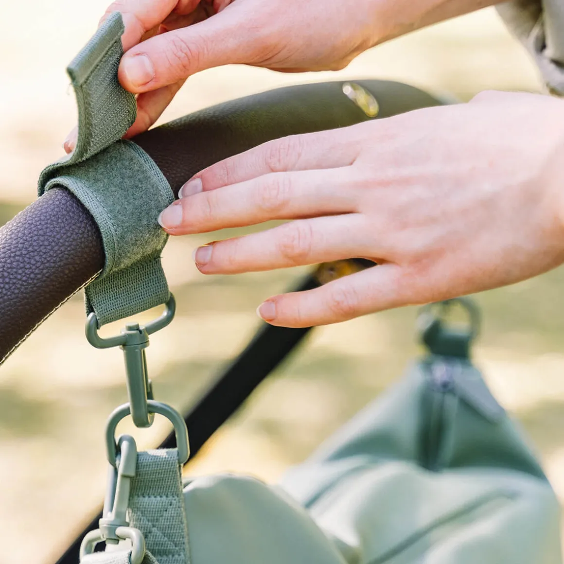 Ce sac de poussette Vert est un moyen pratique et élégant de garder vos affaires et celles de votre enfant organisées et facilement accessibles. Il se fixe sans effort à la poignée de la nacelle à l’aide des crochets pour poussette.