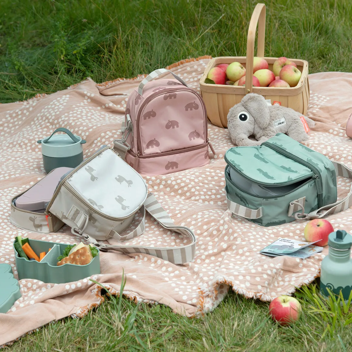 Le sac à lunch isotherme pour enfants Ozzo est parfait pour apporter de la nourriture et des boissons sur l’aller et les garder chaudes ou froides pendant le voyage. Il est fabriqué en 100 % polyester avec un tissu isolant à l’intérieur. Toutes les lunch boxes et les gourdes de Done by Deer s’adaptent au sac.