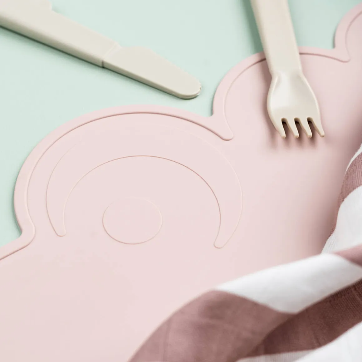 Set de tables en forme de Croco dans une jolie couleur Rose avec des bords surélevés. Le bord surélevé empêche les liquides de se répandre, tandis que le silicone 100 % alimentaire et sans BPA garantit la sécurité des enfants.